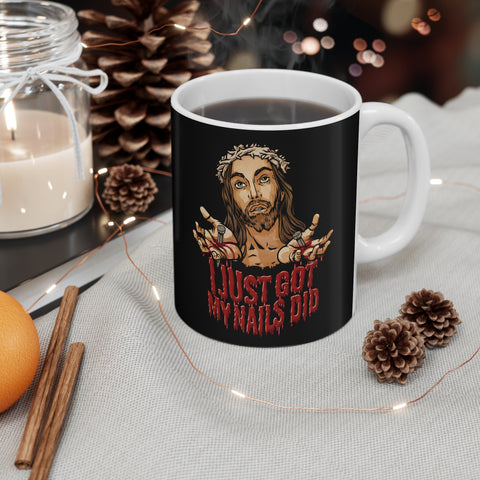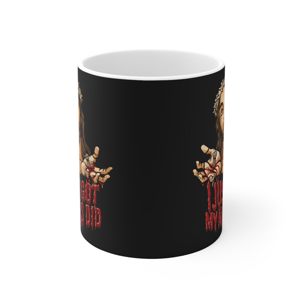 This white ceramic, 11 oz mug is easy to clean and is microwave and dishwasher safe.